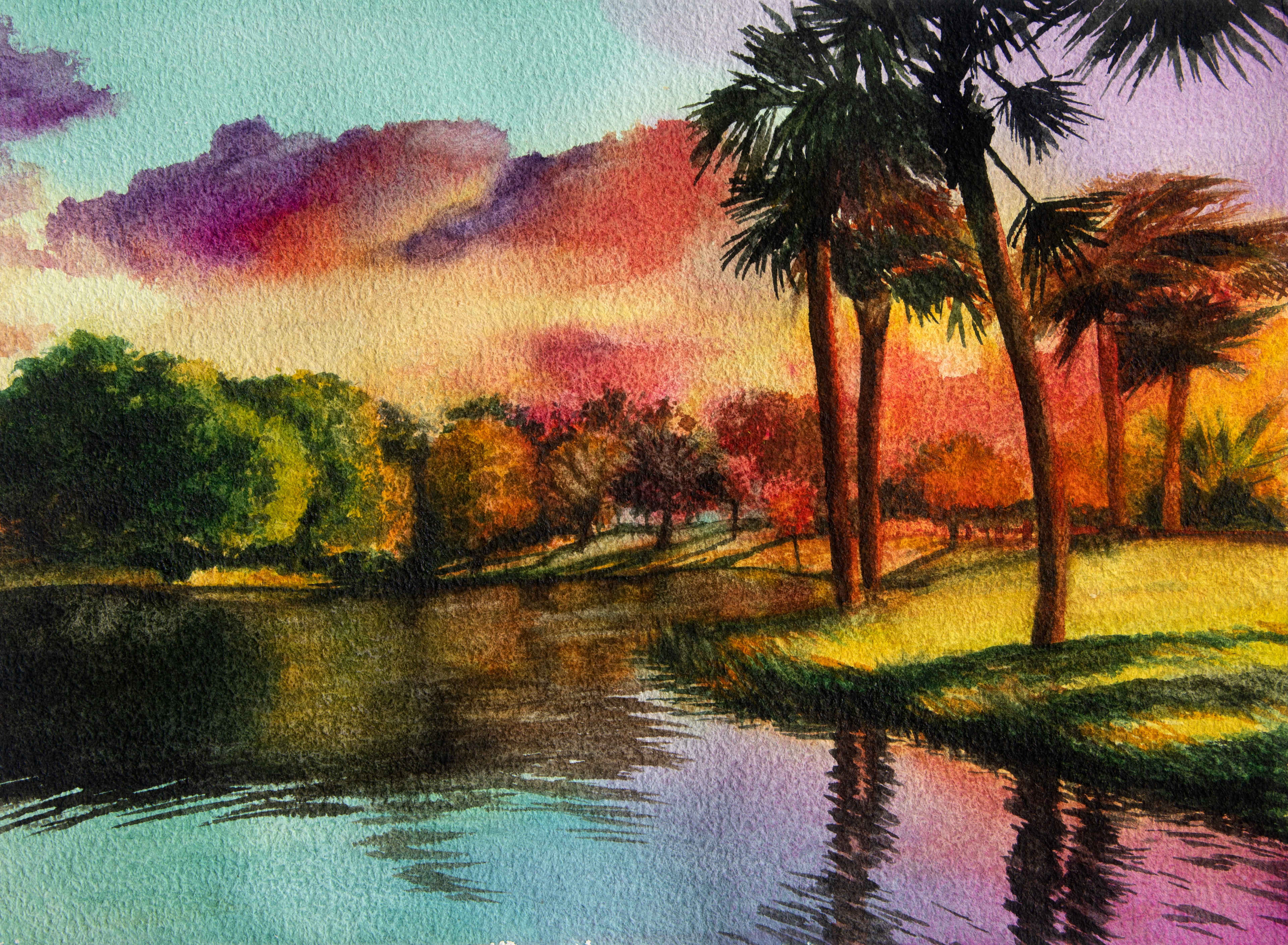 Bruner Pond, Watercolor, 4"x6", SOLD
